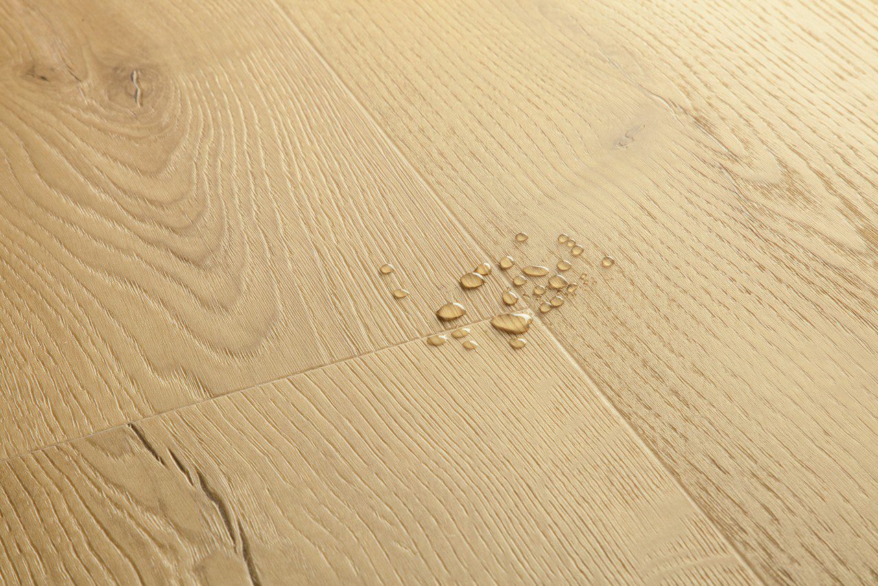 Verabschieden Sie sich von Feuchtigkeitsproblemen – mit dem wasserfesten Quick-Step Klick Vinylboden mit verstärktem starren Kern.