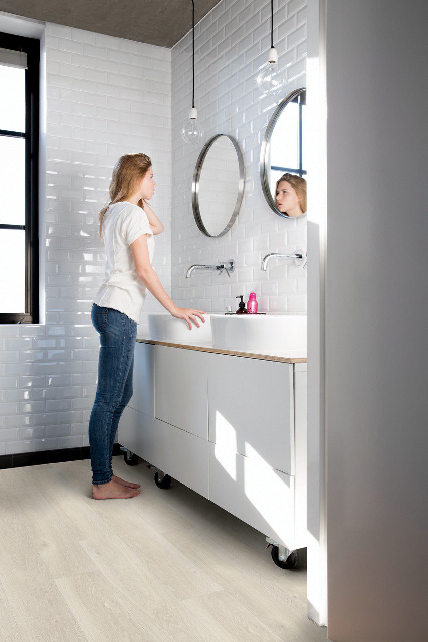 Verabschieden Sie sich von Feuchtigkeitsproblemen – mit dem wasserfesten Quick-Step Klickvinyl mit verstärktem starren Kern.