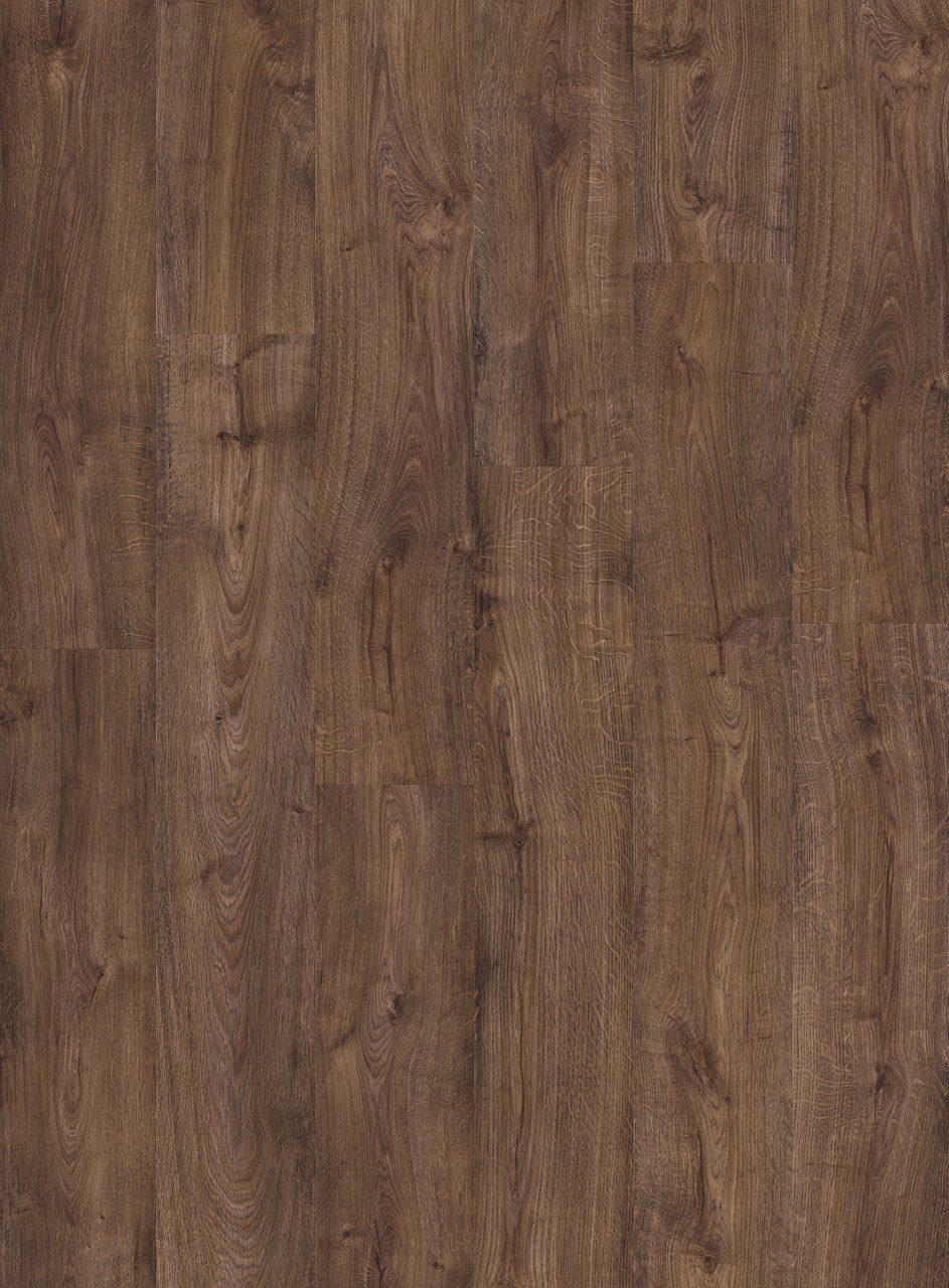 • Vinyylilankku Quick Step Autumn Oak Chocolate, tumma suklaanruskea tammen sävy ja lankkudesign.