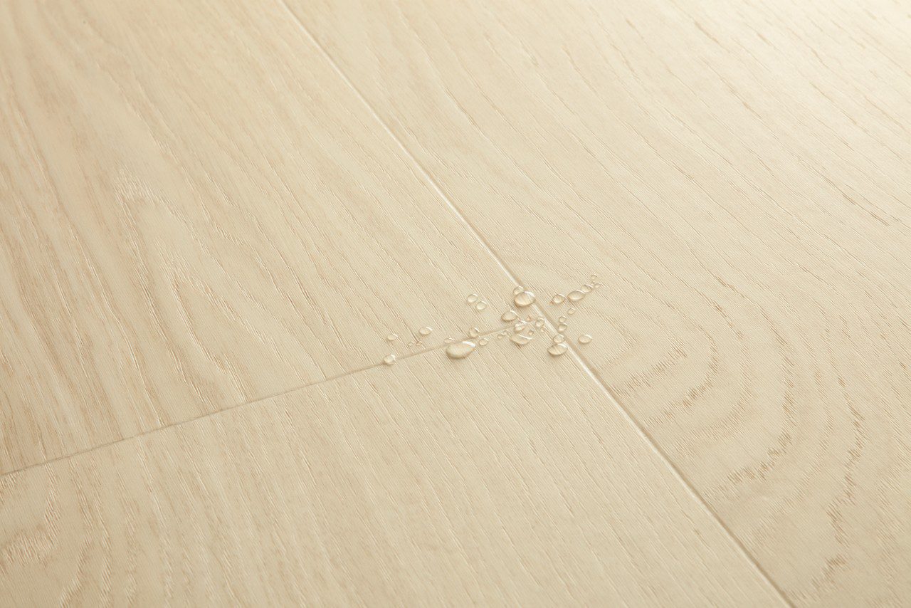 Verabschieden Sie sich von Feuchtigkeitsproblemen – mit dem wasserfesten Quick-Step Vinylboden mit verstärktem starren Kern.